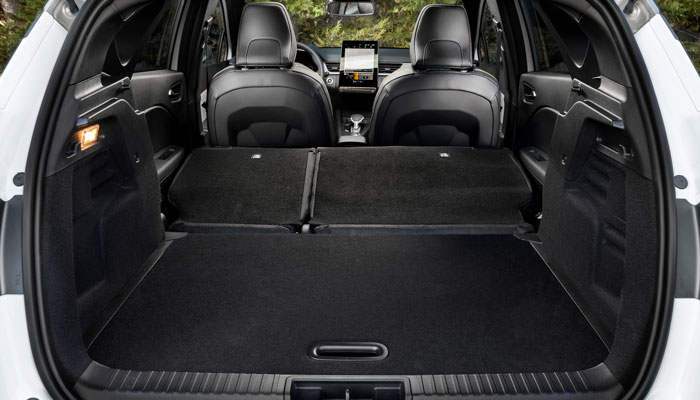 Auch beim Kofferraumvolumen gehört der neue Captur zu den Besten seiner Klasse: Bei ganz nach vorn geschobener Rückbank beträgt die maximale Ladekapazität 616 Liter. Durch Umklappen der im Verhältnis 1/3 zu 2/3 asymmetrisch geteilten Lehne lässt sich diese nochmals erhöhen. 1,57 Meter an Ladelänge stehen dann zur Verfügung, während der herausnehmbare Kofferraumboden dabei für eine ebene Ladefläche sorgt. Hinzu kommen über den Innenraum verteilt insgesamt fast 25 Liter Stauraum, darunter ein 7-Liter-Handschuhfach oder je nach Ausstattung Kartentaschen an den Rückseiten der Vordersitze.